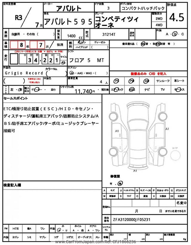 Abarth 595 2021 for sale in Kenya -Ksh. 3,433,437 (Duty not paid)