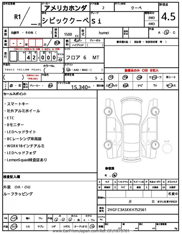 AMERICA HONDA CIVIC COUPE 2019 for sale in Kenya -Ksh. 5,720,356 (Duty not paid)