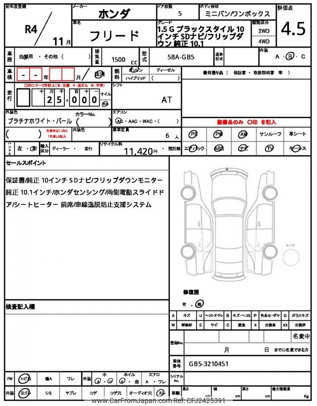 Honda Freed 2022 for sale in Kenya -Ksh. 3,253,663 (Duty not paid)