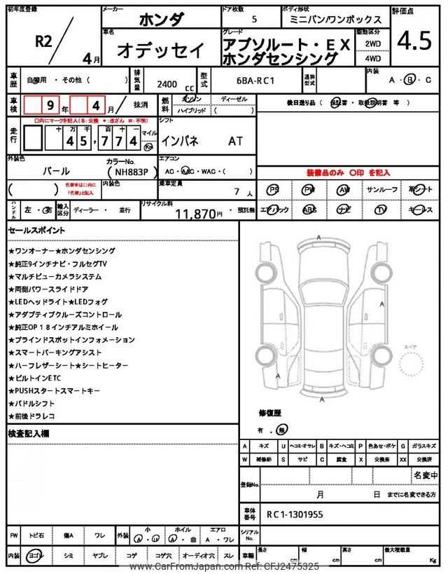 Honda Odyssey 2020 for sale in Kenya -Ksh. 3,606,215 (Duty not paid)