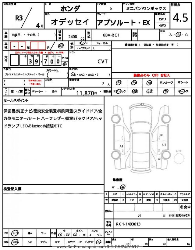 Honda Odyssey 2021 for sale in Kenya -Ksh. 4,364,329 (Duty not paid)