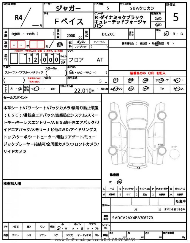 Jaguar F-Pace 2022 for sale in Kenya -Ksh. 6,222,157 (Duty not paid)