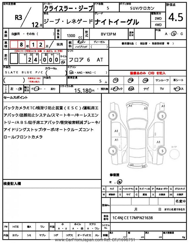 Jeep Renegade 2021 for sale in Kenya -Ksh. 3,332,670 (Duty not paid)