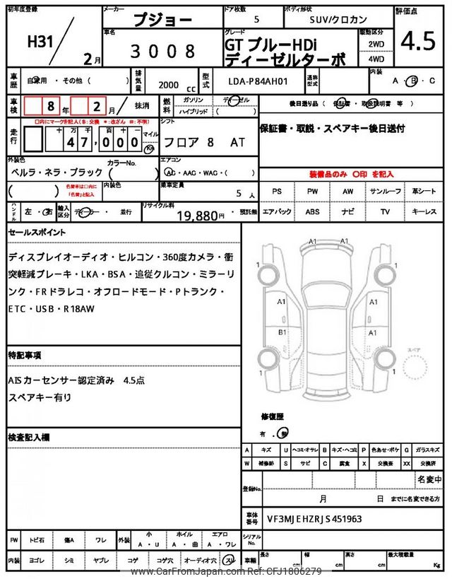 Peugeot 3008 2019 for sale in Kenya -Ksh. 3,082,126 (Duty not paid)