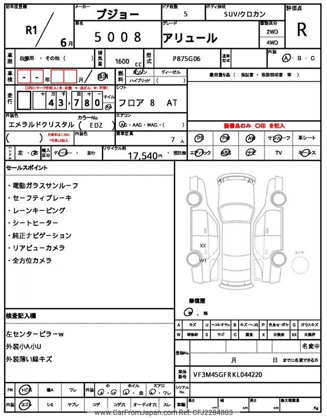 Peugeot 5008 2019 for sale in Kenya -Ksh. 2,274,578 (Duty not paid)