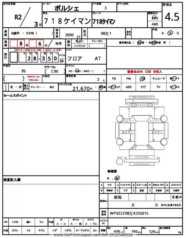 Porsche 718 Cayman 2020 for sale in Kenya -Ksh. 7,167,920 (Duty not paid)