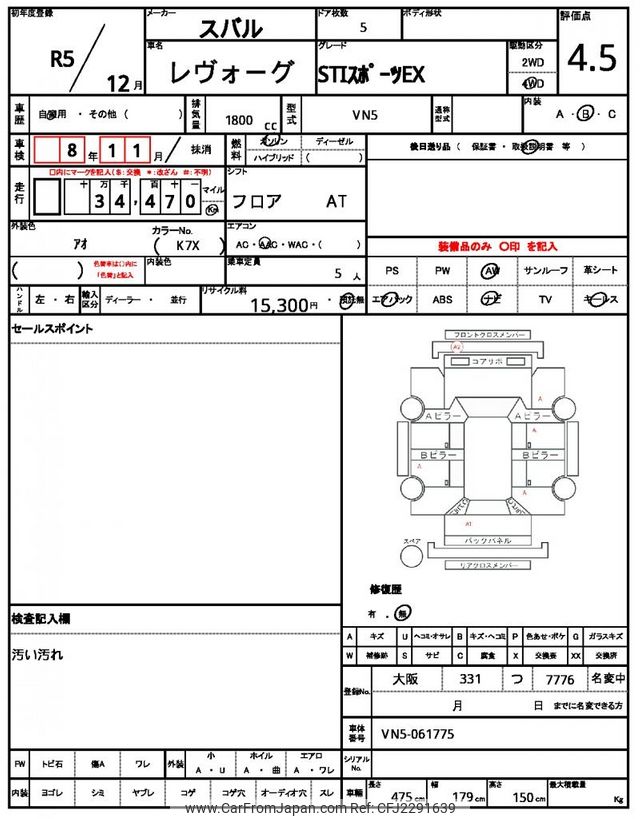Subaru Levorg 2023 for sale in Kenya -Ksh. 3,781,540 (Duty not paid)