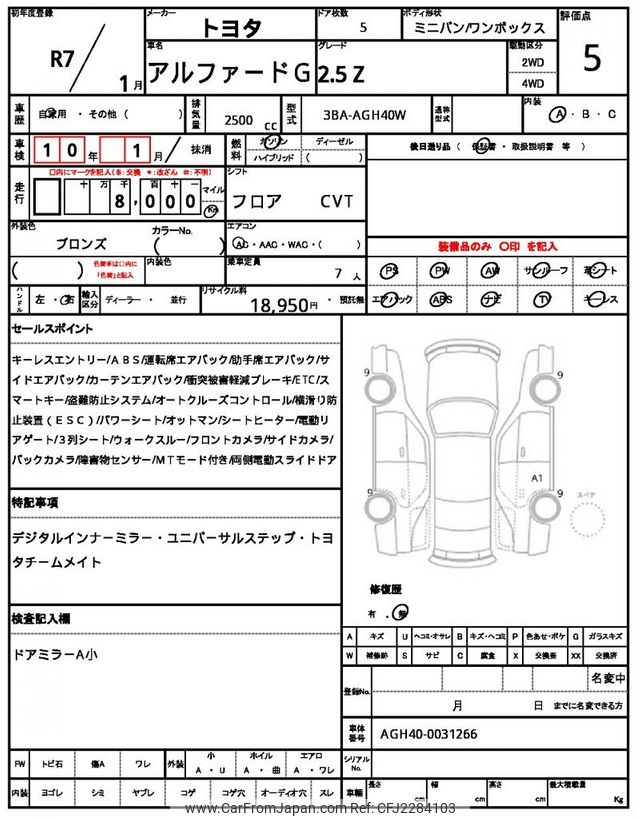 Toyota Alphard G 2025 for sale in Kenya -Ksh. 8,166,759 (Duty not paid)