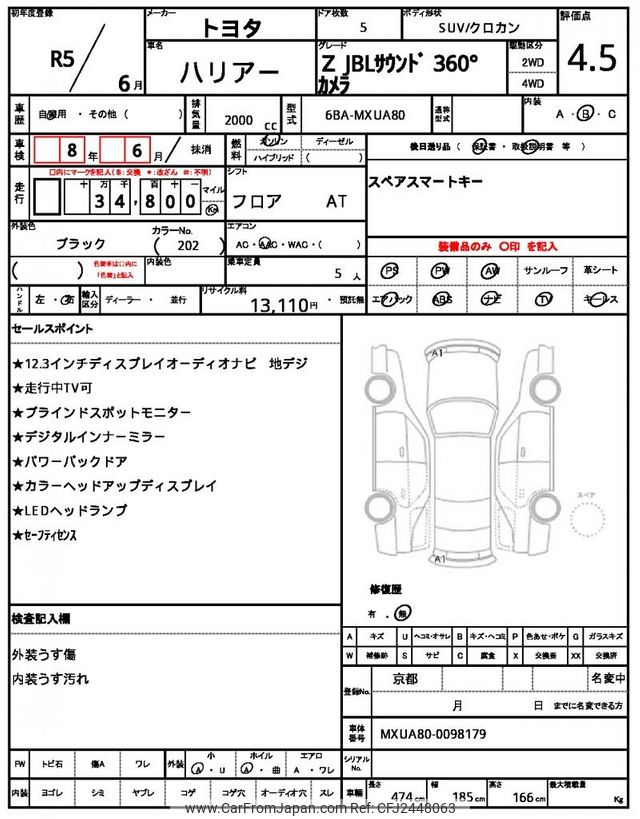 Toyota Harrier 2023 for sale in Kenya -Ksh. 4,451,767 (Duty not paid)