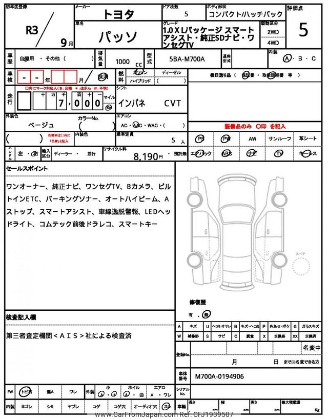 Toyota Passo 2021 for sale in Kenya -Ksh. 2,003,112 (Duty not paid)