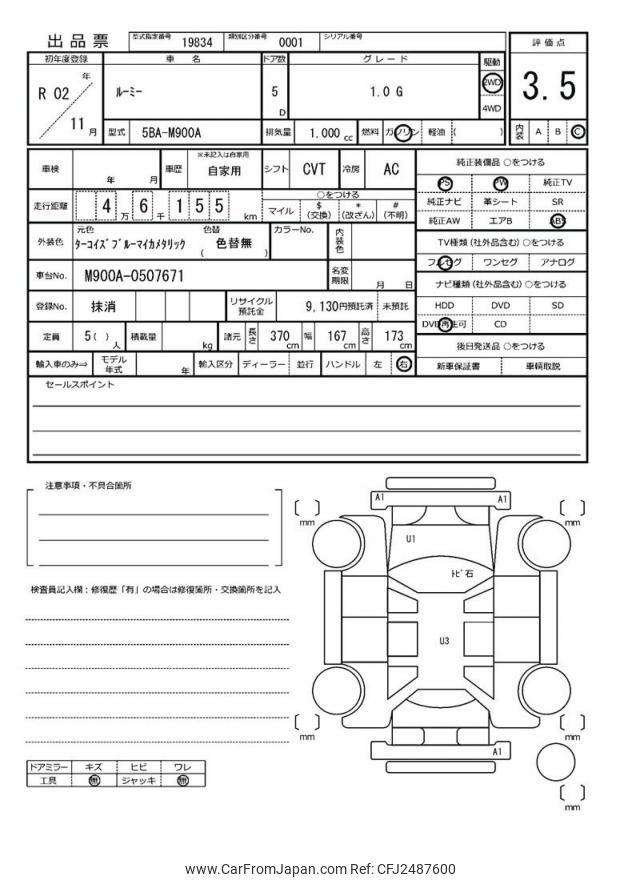 Toyota Roomy 2020 for sale in Kenya -Ksh. 1,605,302 (Duty not paid)