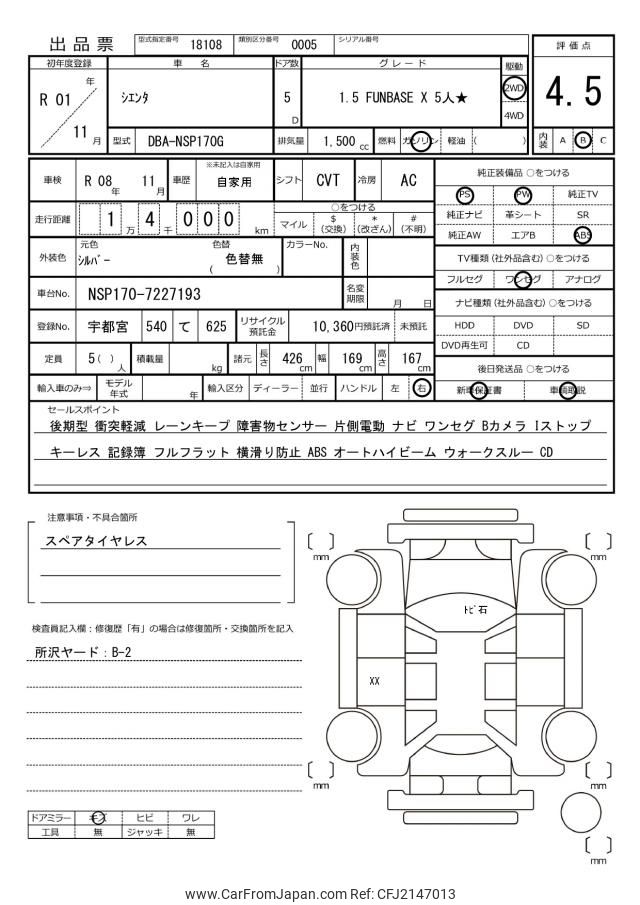 Toyota Sienta 2019 for sale in Kenya -Ksh. 2,250,266 (Duty not paid)