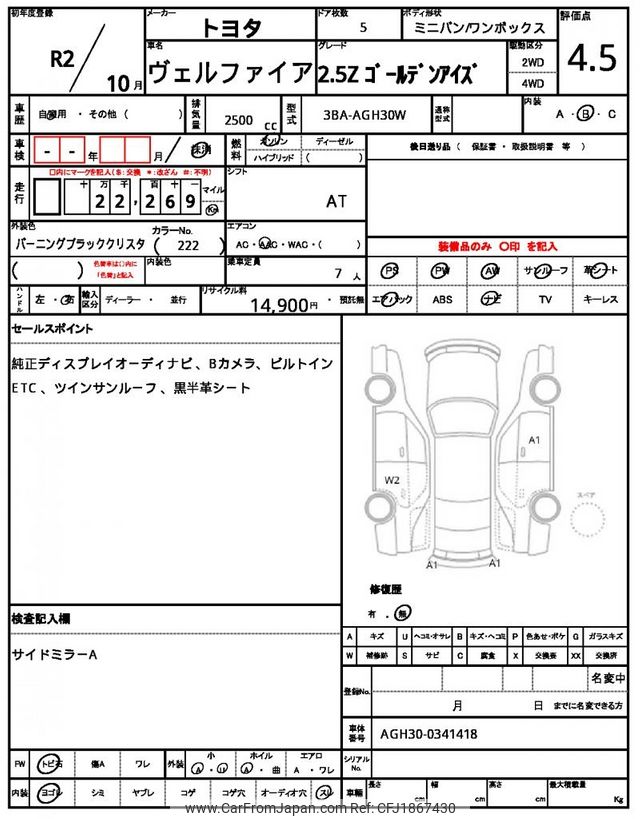 Toyota Vellfire 2020 for sale in Kenya -Ksh. 4,334,766 (Duty not paid)