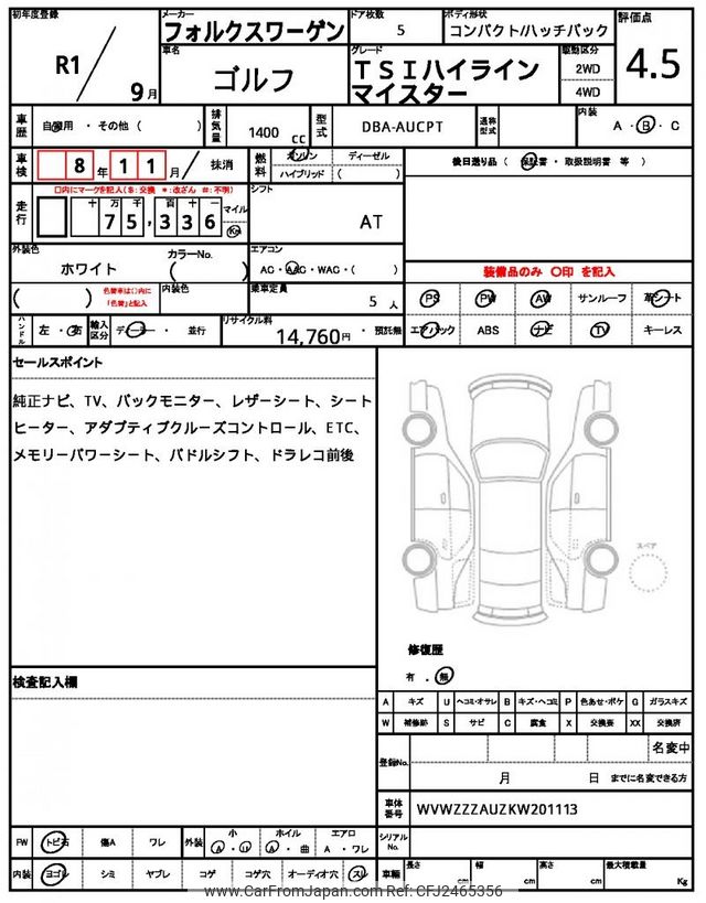 Volkswagen Golf 2019 for sale in Kenya -Ksh. 2,541,621 (Duty not paid)