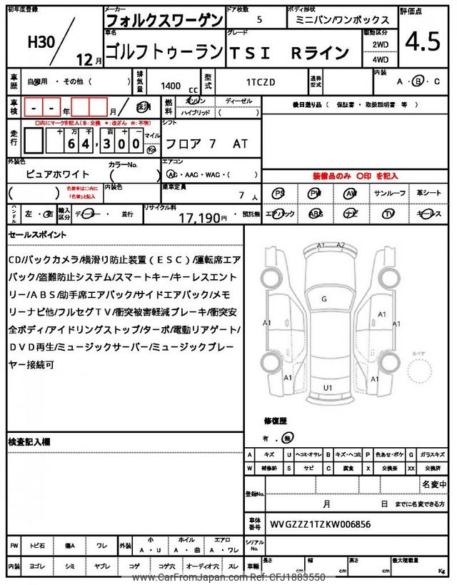 Volkswagen Golf Touran 2018 for sale in Kenya -Ksh. 2,989,031 (Duty not paid)
