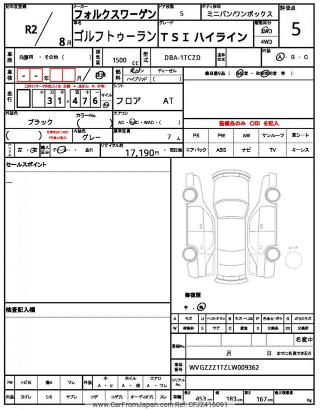 Volkswagen Golf Touran 2020 for sale in Kenya -Ksh. 3,290,724 (Duty not paid)